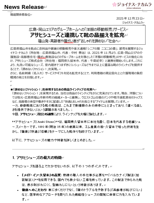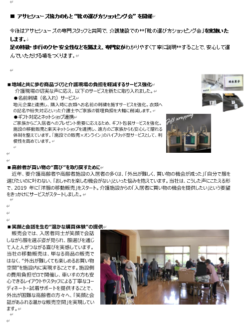 高齢者施設様へ当店から商品をお持ちして気に入った商品をお買い求め頂くサービスです。